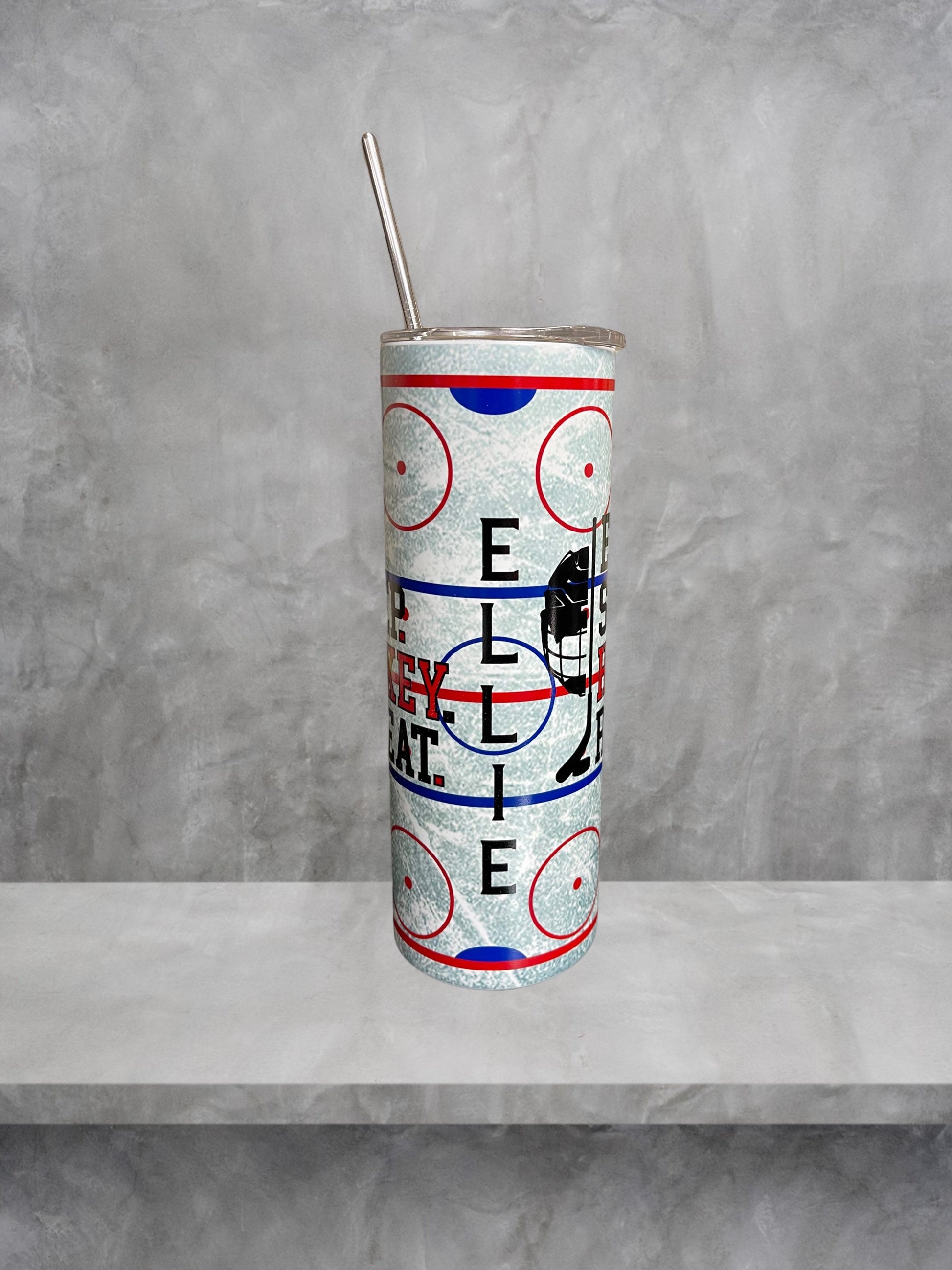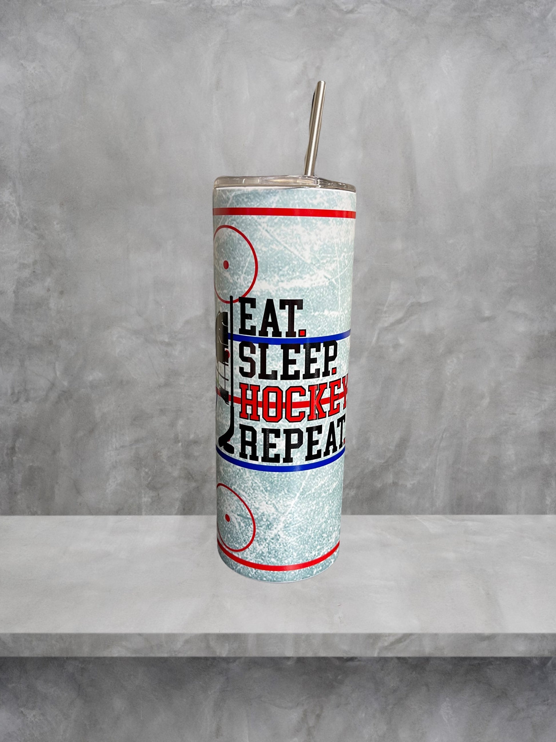 Eat Sleep Hockey Repeat glow in the dark tumbler