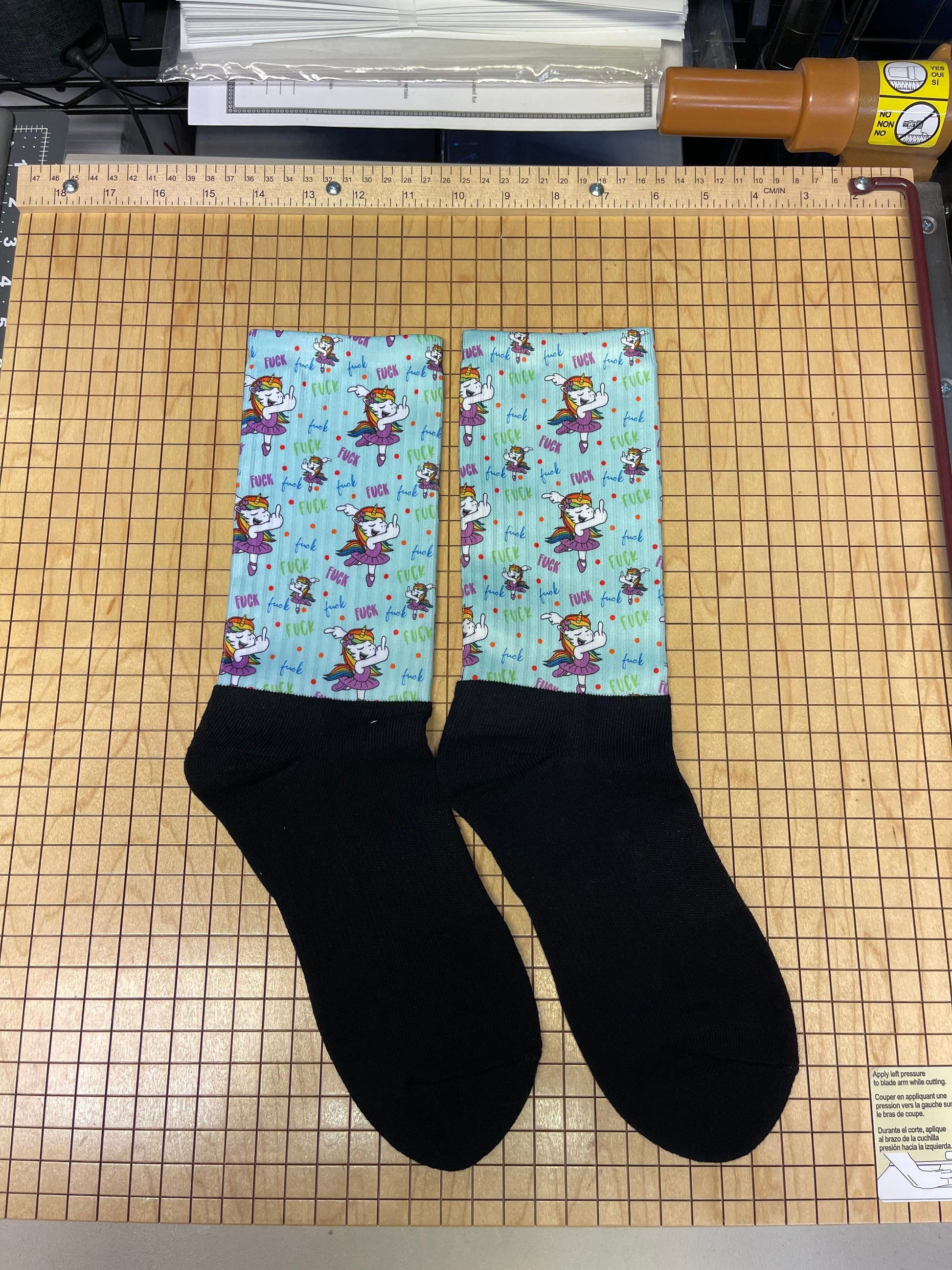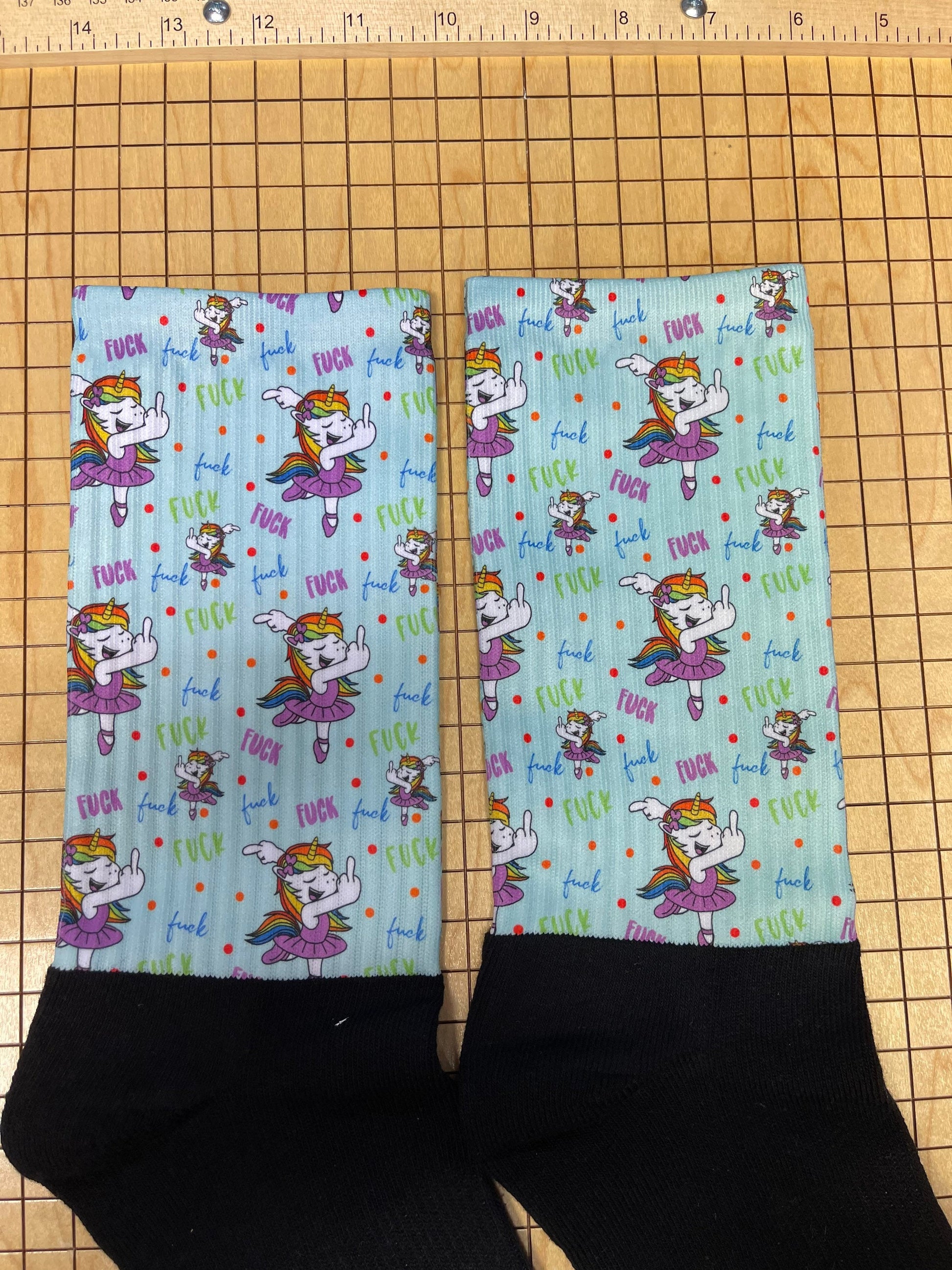 Funny Unicorn athletic socks. Handcrafted in the USA