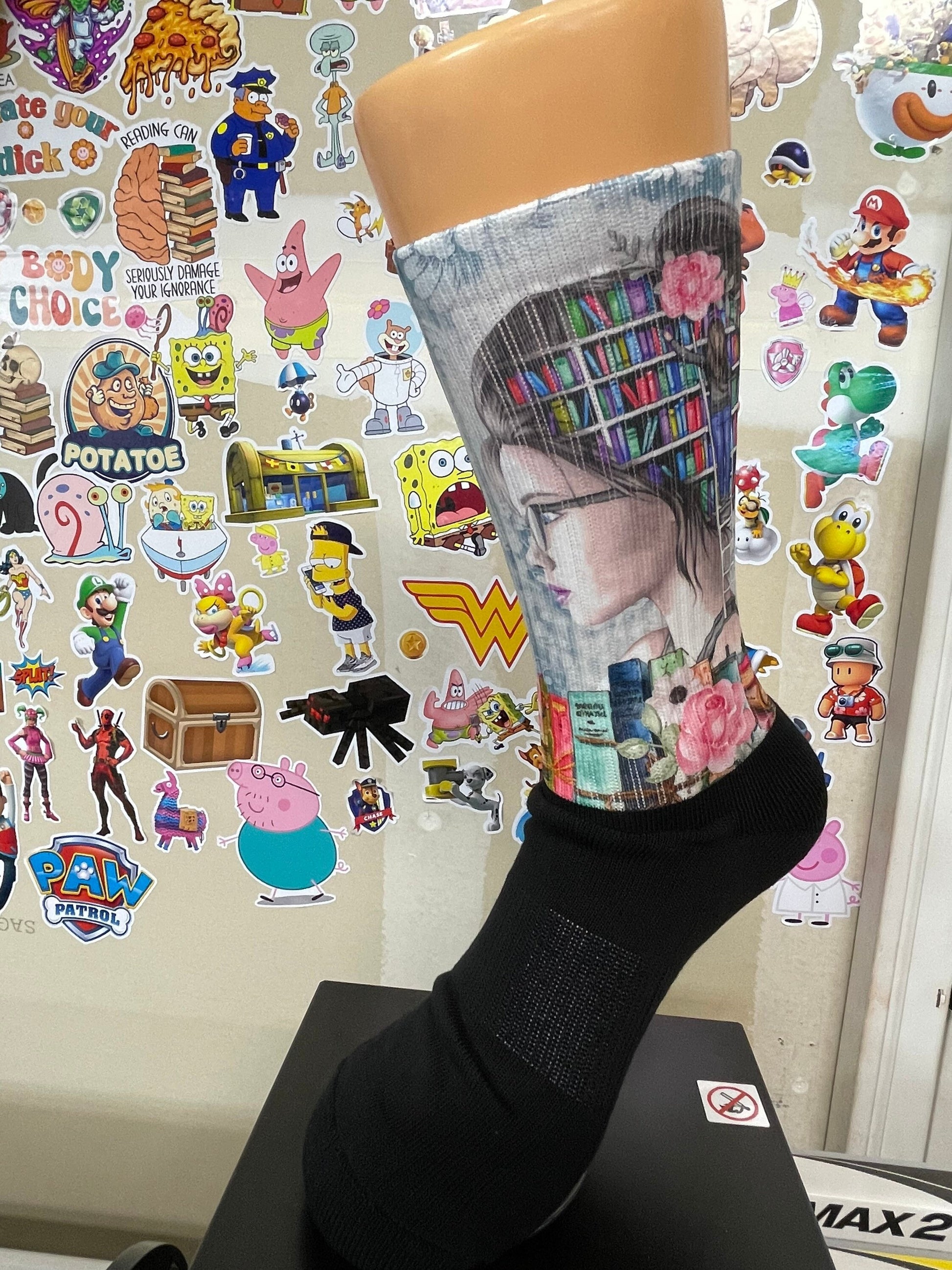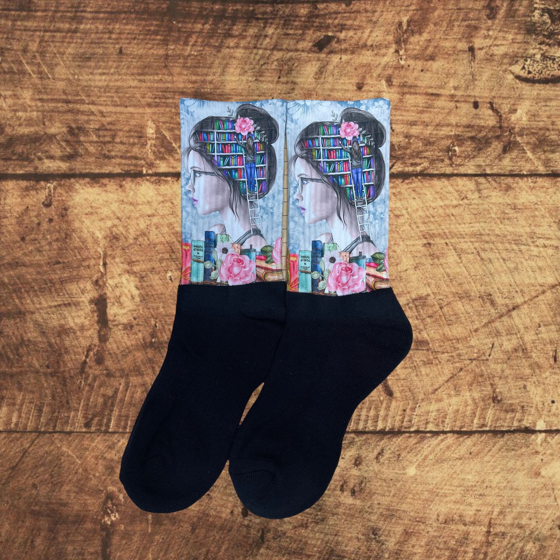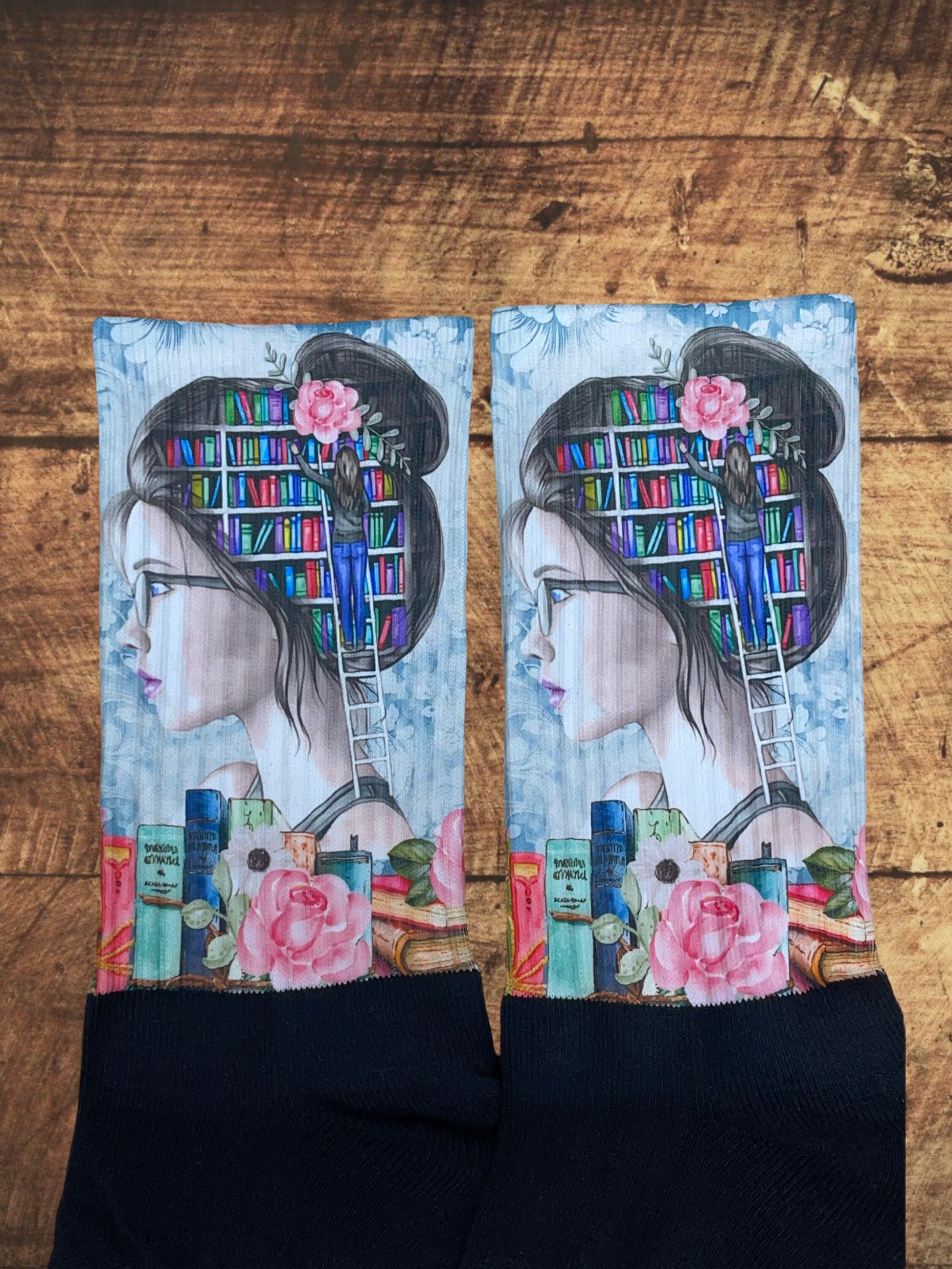 Just a girl who loves books socks. Handcrafted in the USA