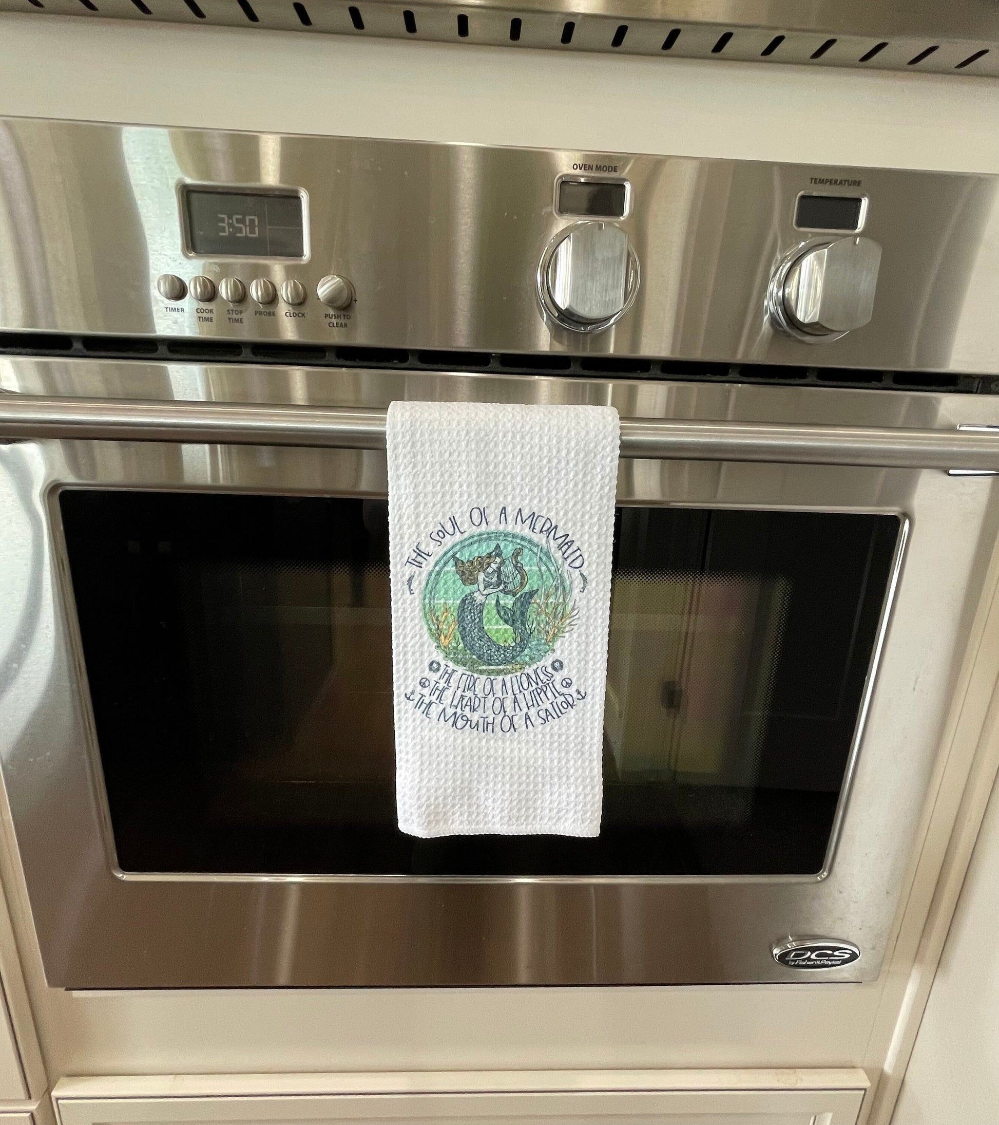 Our durable kitchen towels are approximately 16” x 24” and are made of absorbent microfiber. They are not only decorative, but functional too!
