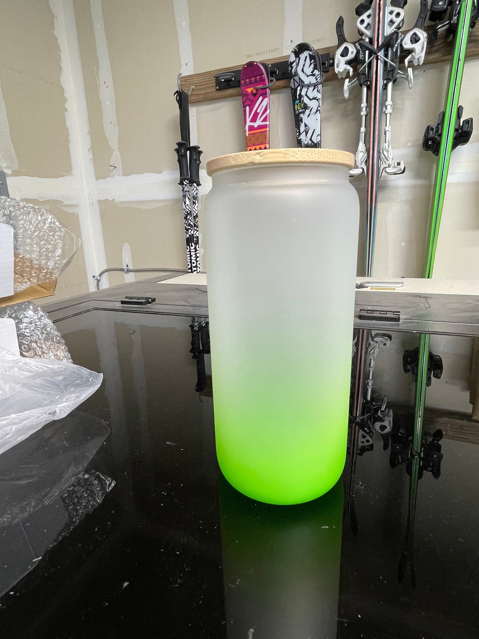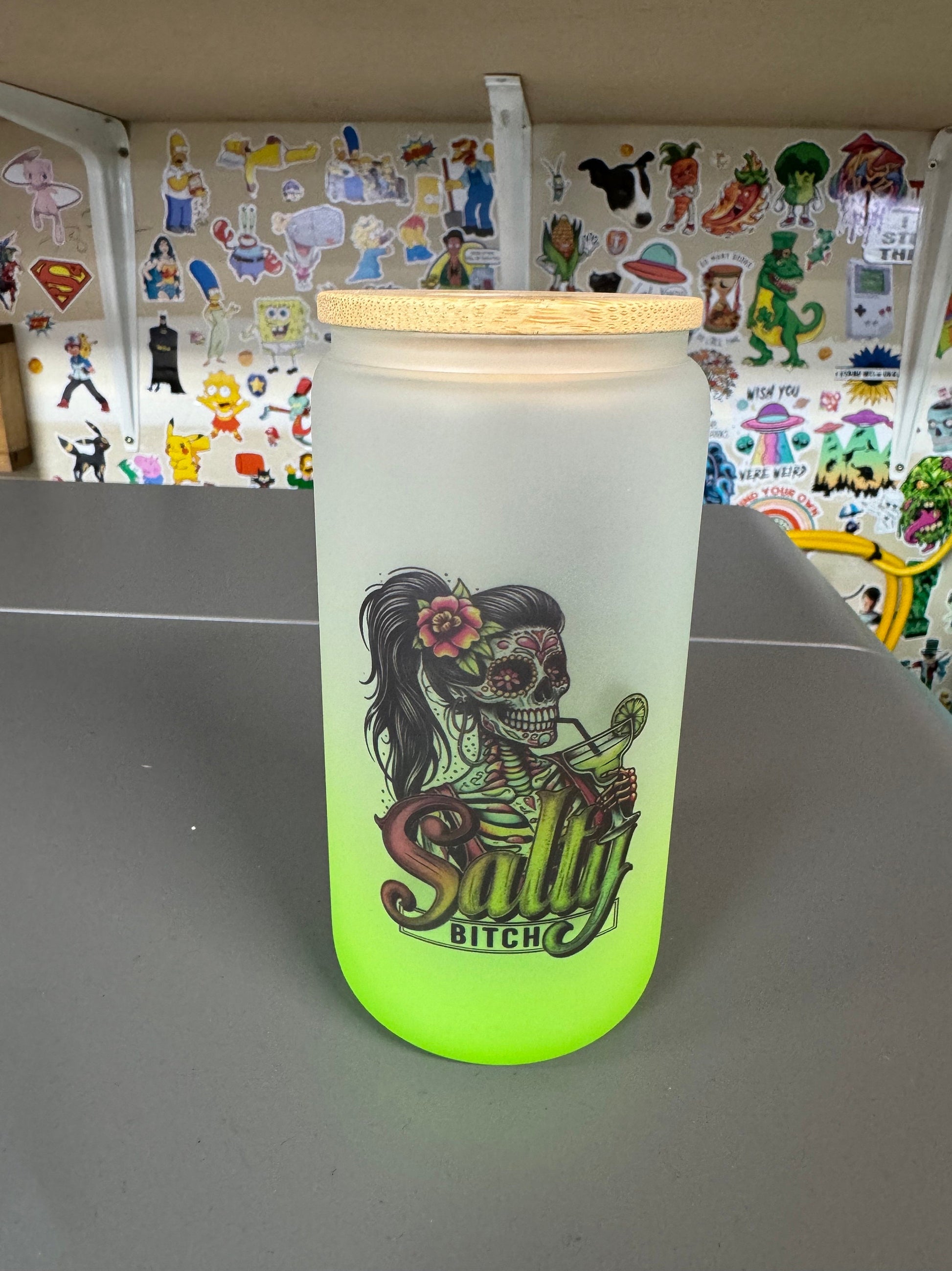 Tequila salty tumbler. Frosted glass With bamboo lid and plastic straw. Choose between 5 colors and 2 sizes.